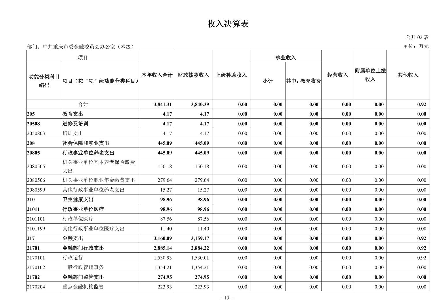 中共重庆市委金融委员会办公室(本级) 2024年度决算公开说明