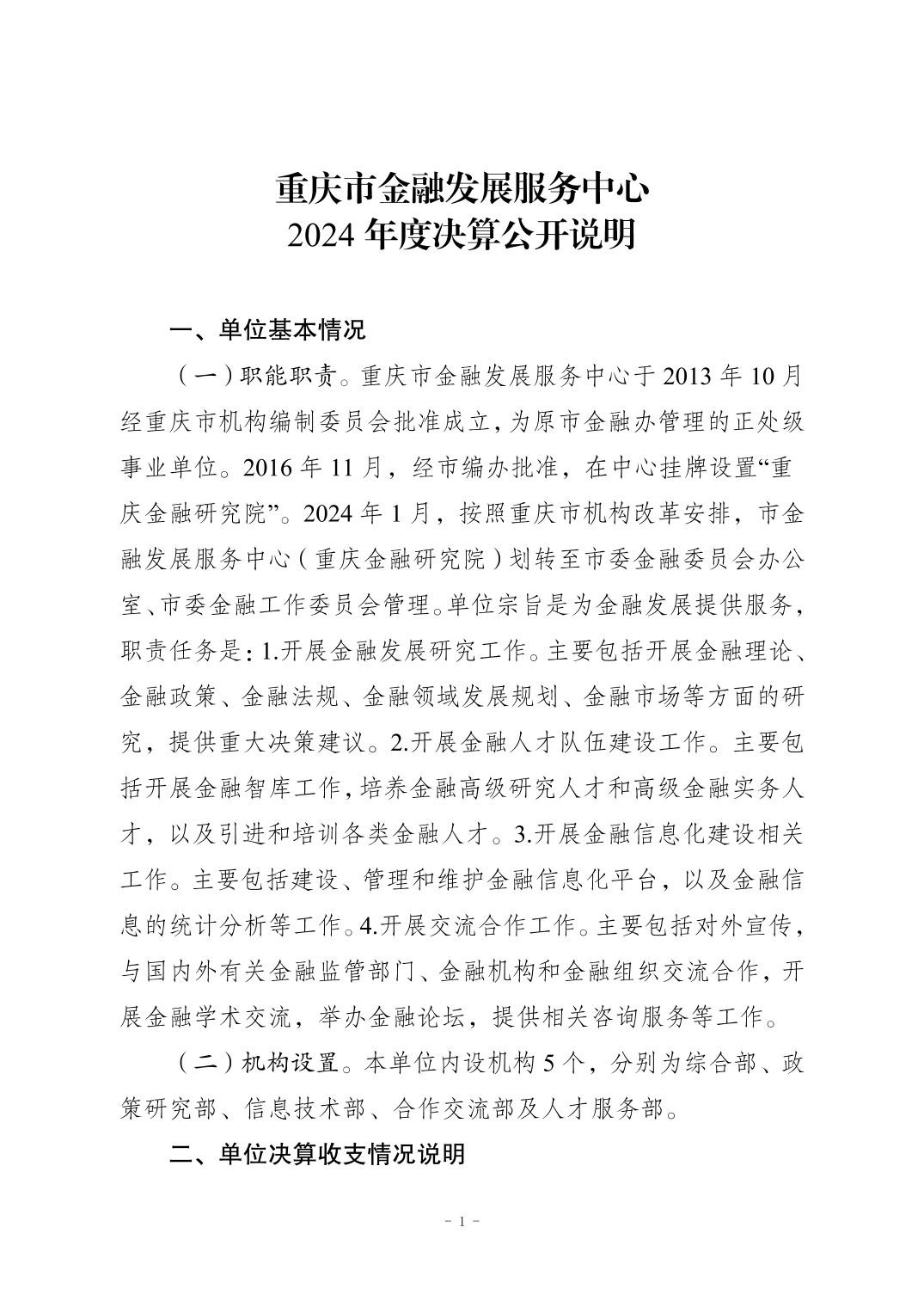 重庆市金融发展服务中心2024年度决算公开说明