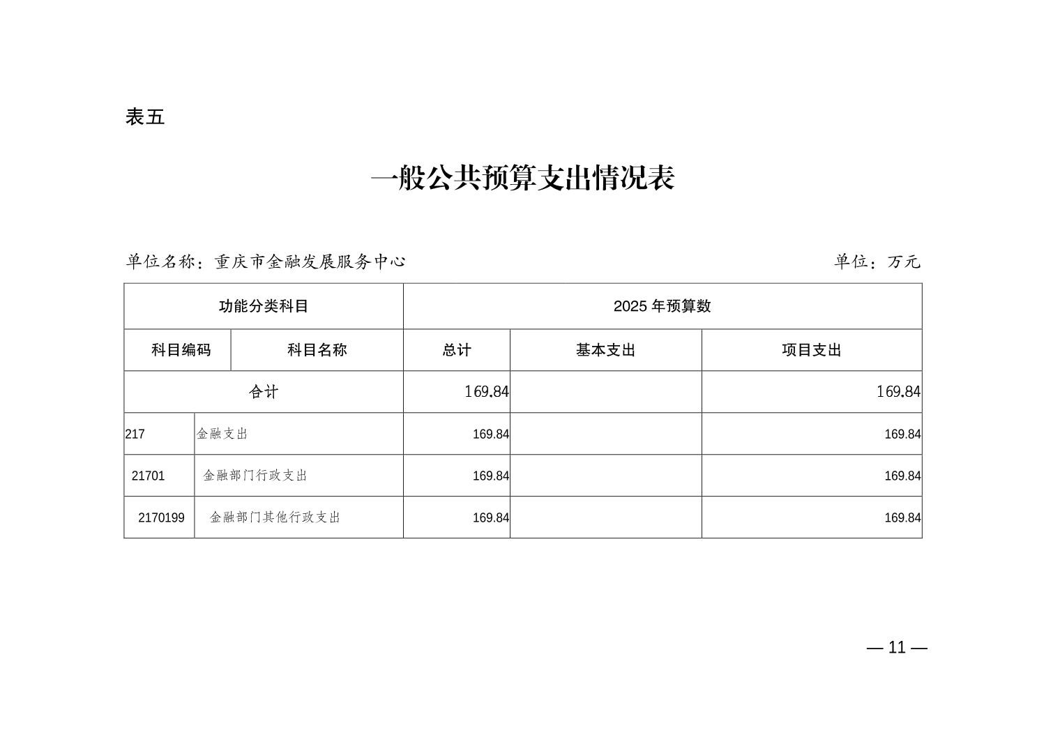 重庆市金融发展服务中心2025年单位预算情况说明