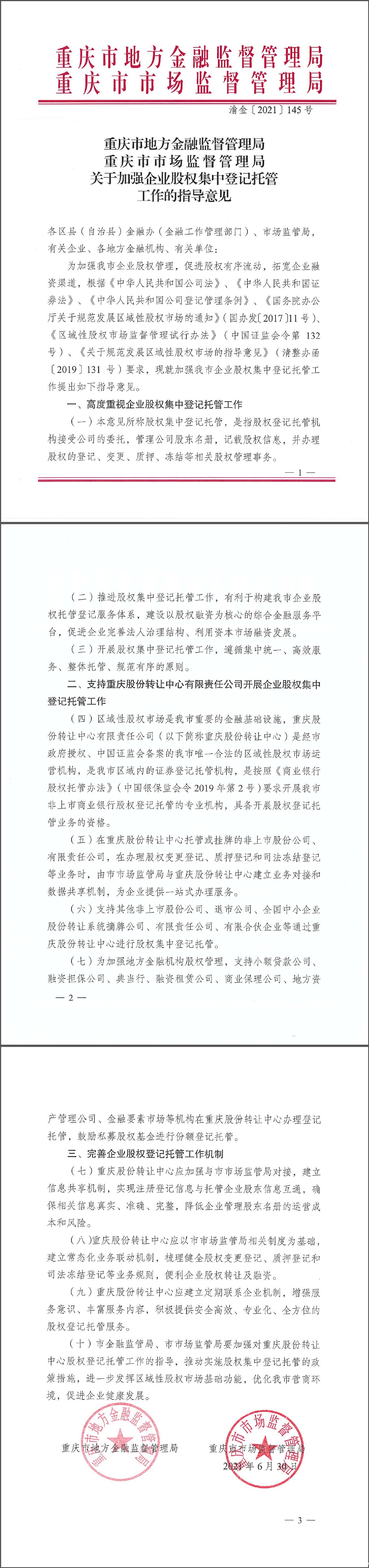 2026美加墨世界杯赛程表 重庆市市场监督管理局关于加强企业股权集中登记托管工作的指导意见(渝金〔2021〕145号).pdf