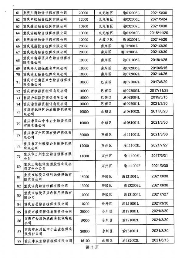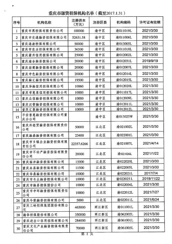 重庆市融资担保机构名单