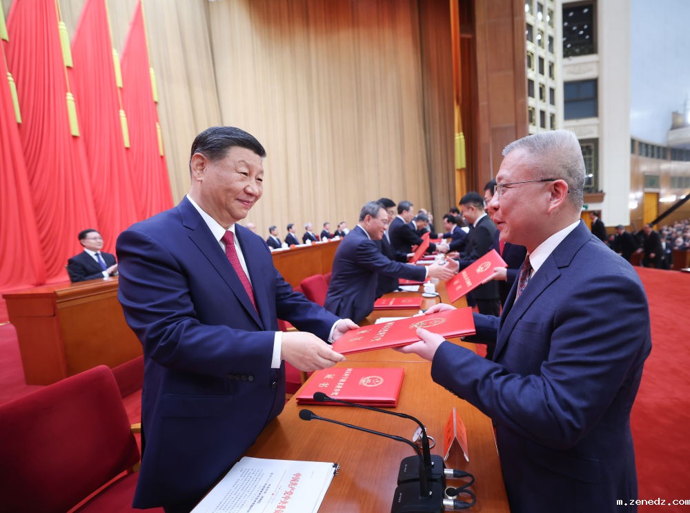 6月24日,全国科技大会、国家科学技术奖励大会和中国科学院第二十一次院士大会、中国工程院第十七次院士大会在北京人民大会堂隆重召开。中共中央总书记、国家主席、中央军委主席习近平向获得2023年度国家最高科学技术奖的清华大学薛其坤院士颁奖。新华社记者 谢环驰 摄